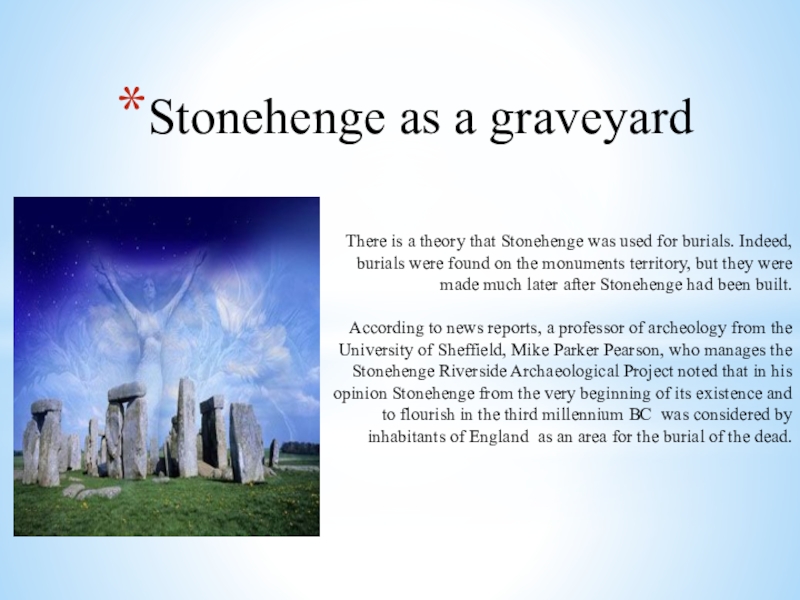 Слайд 8Stonehenge as a graveyard