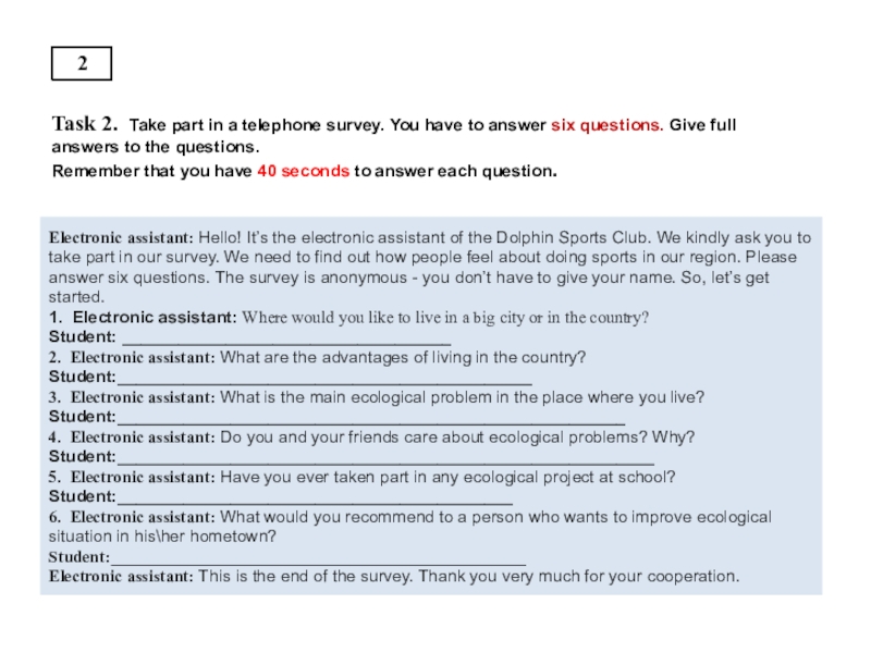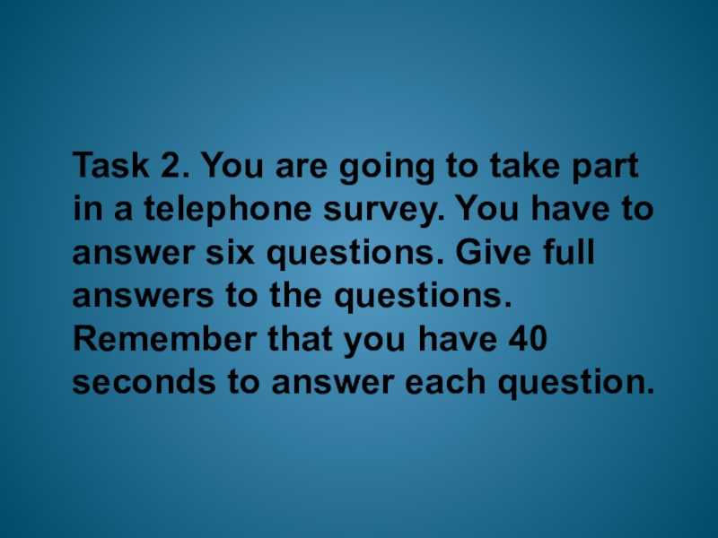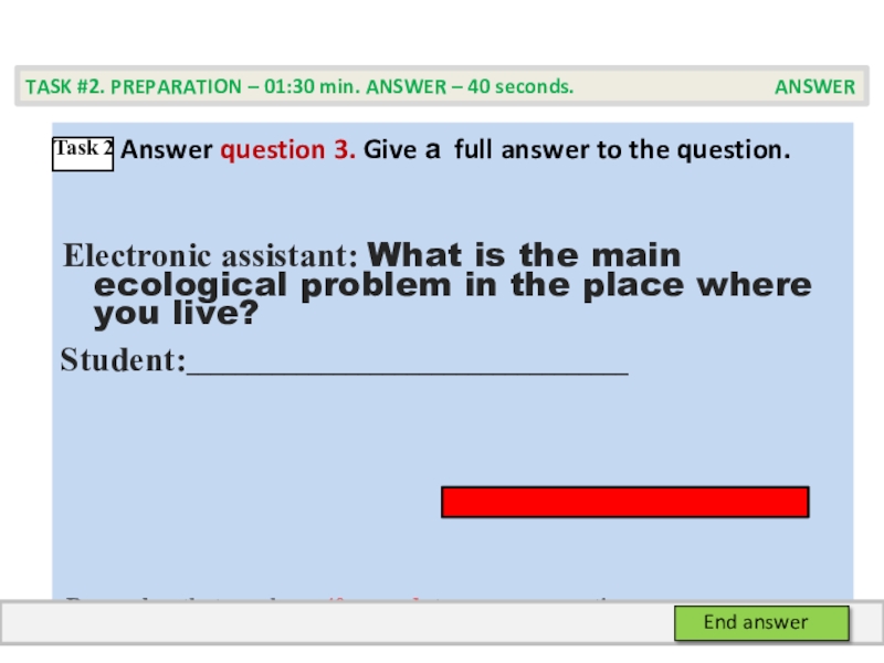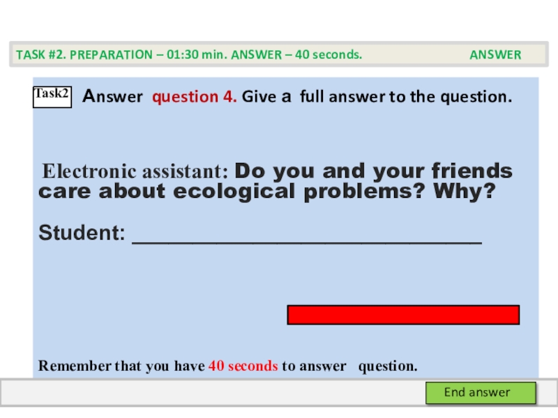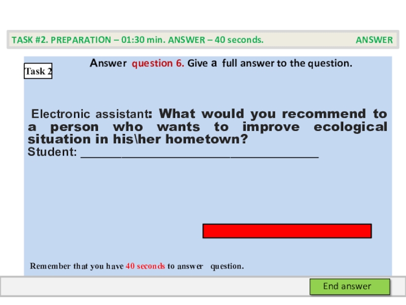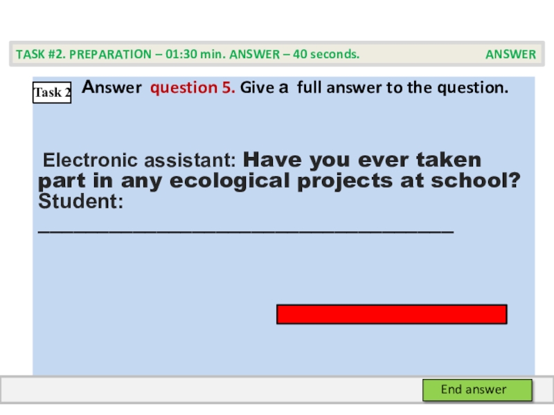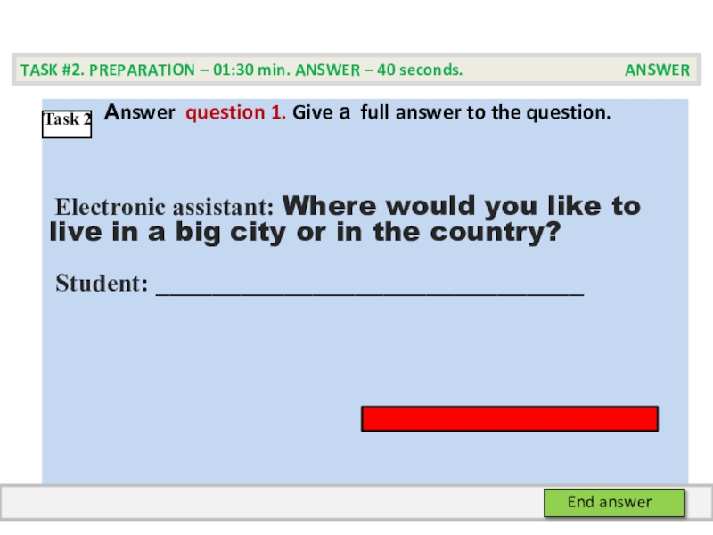 TASK #2. PREPARATION – 01:30 min. ANSWER – 40 seconds. ANSWER