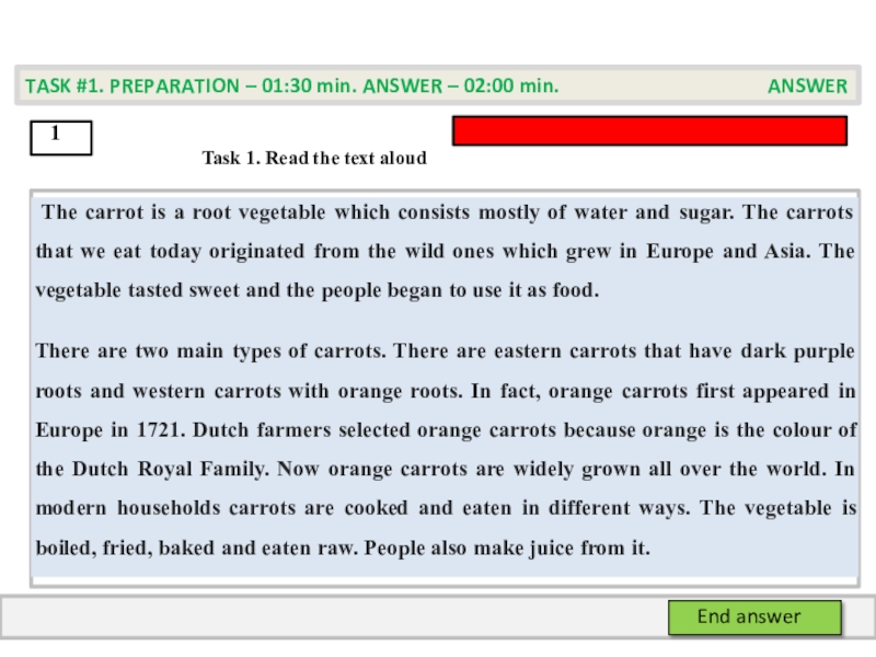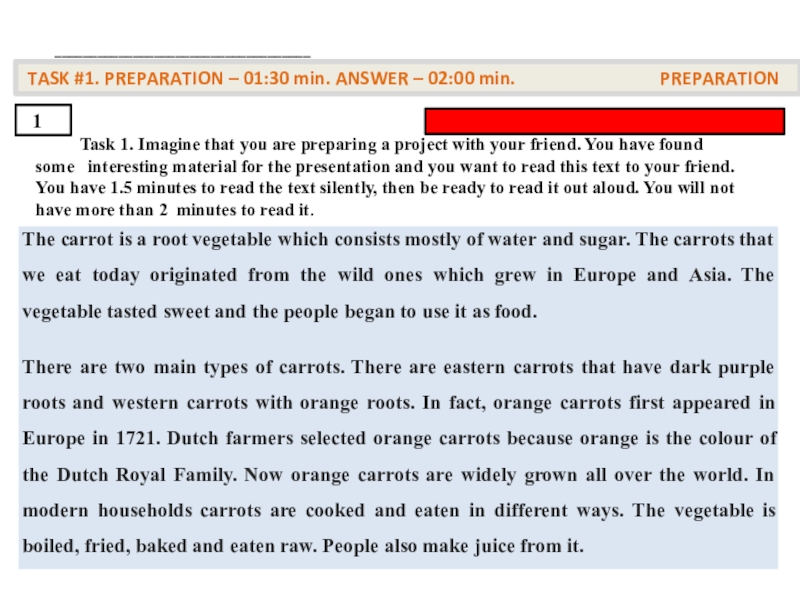 TASK #1. PREPARATION – 01:30 min. ANSWER – 02:00 min. PREPARATION