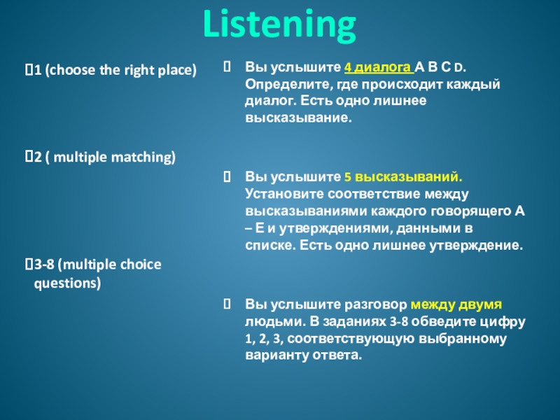 Вы услышите разговор между двумя людьми. В заданиях 3-8 обведите цифру 1, 2, 3, соответствующую выбранному варианту ответа.