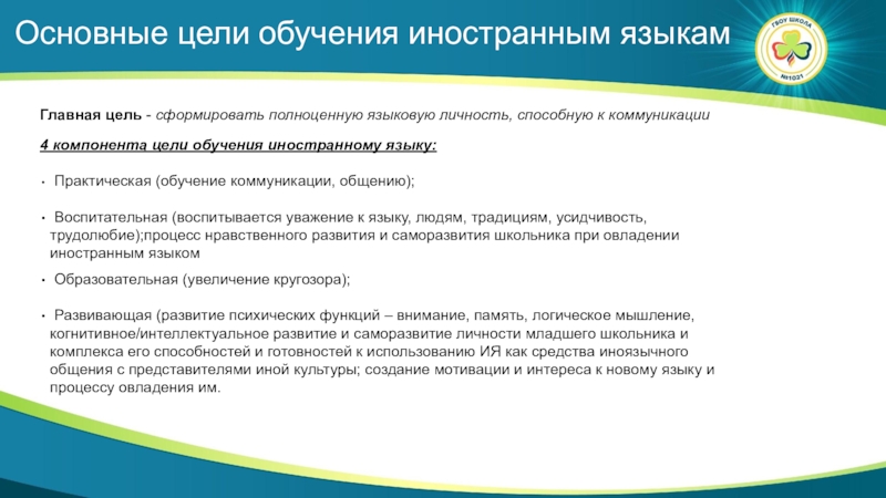 Главная цельсформировать полноценную языковую личность, способную к коммуникации