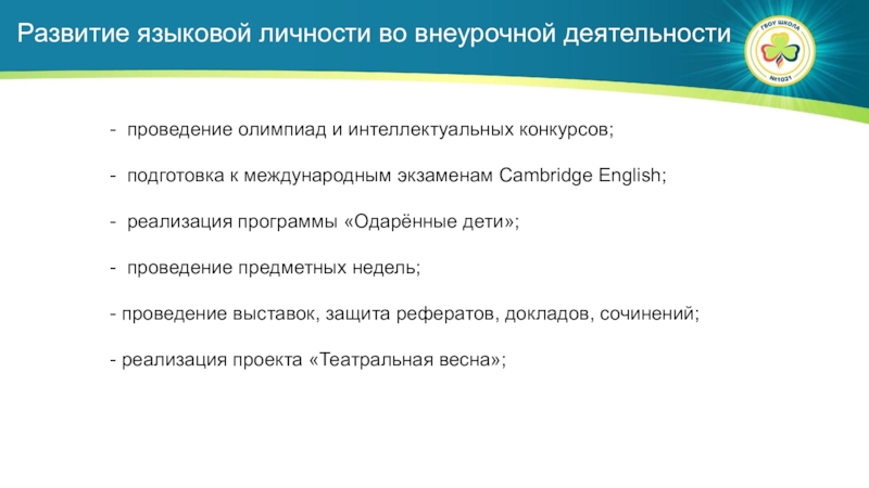 Презентация, доклад к педагогическому совету ГБОУ Школы №1021 на тему перспектив развития иноязычного образования в нашем учебном заведении