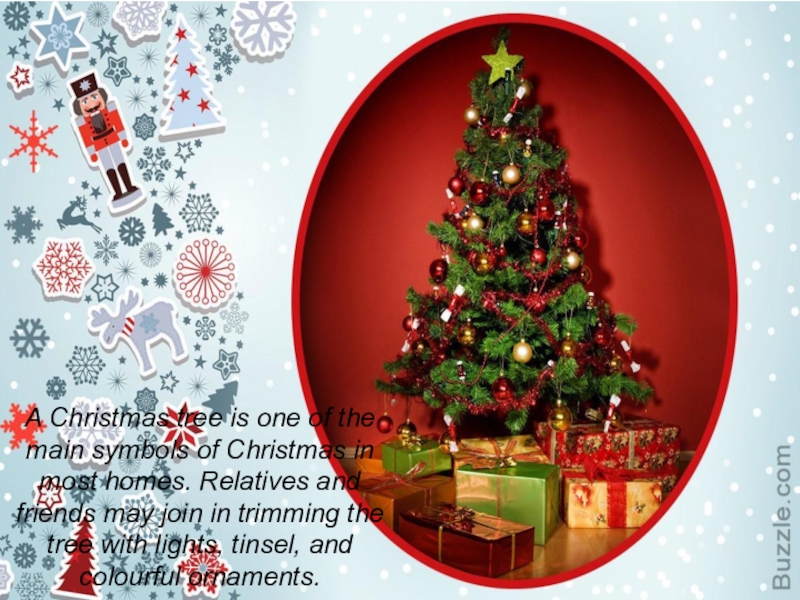 in most homes. Relatives and friends may join in trimming the tree with lights, tinsel, and colourful ornaments.