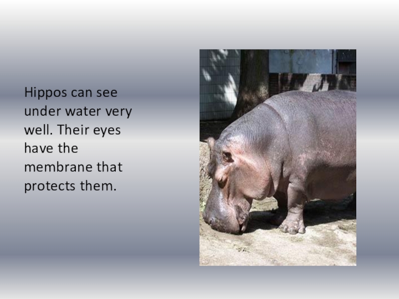 Слайд 23Hippos can see under water very well. Their eyes have the