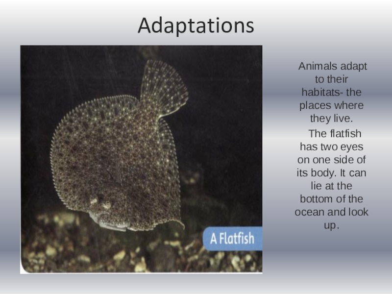 The flatfish has two eyes on one side of its body. It can lie at the bottom of the ocean and look up.