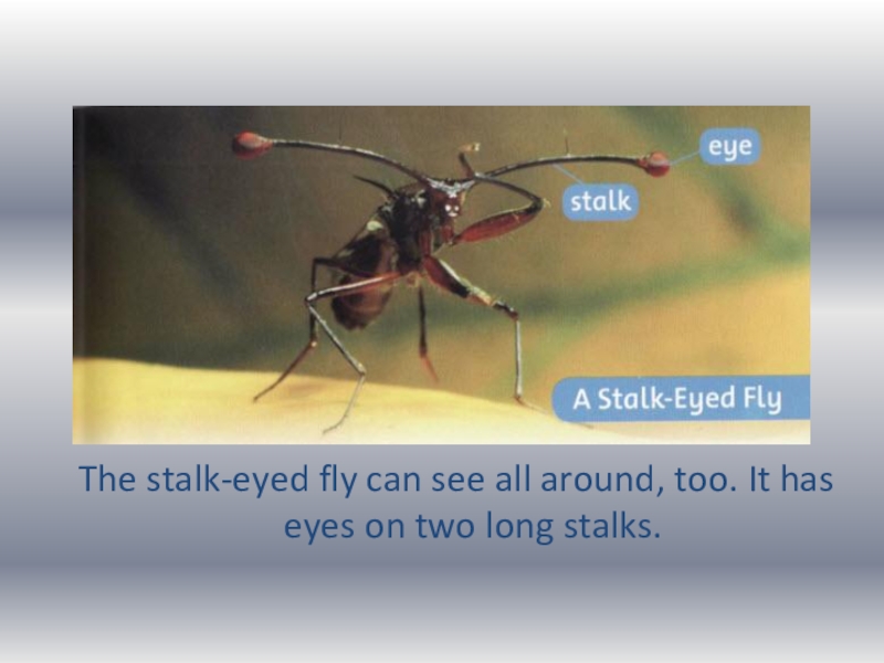 Слайд 11The stalk-eyed fly can see all around, too. It has eyes