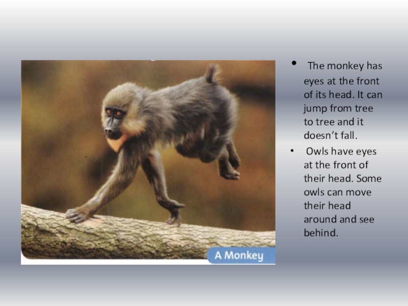 Owls have eyes at the front of their head. Some owls can move their head around and see behind.