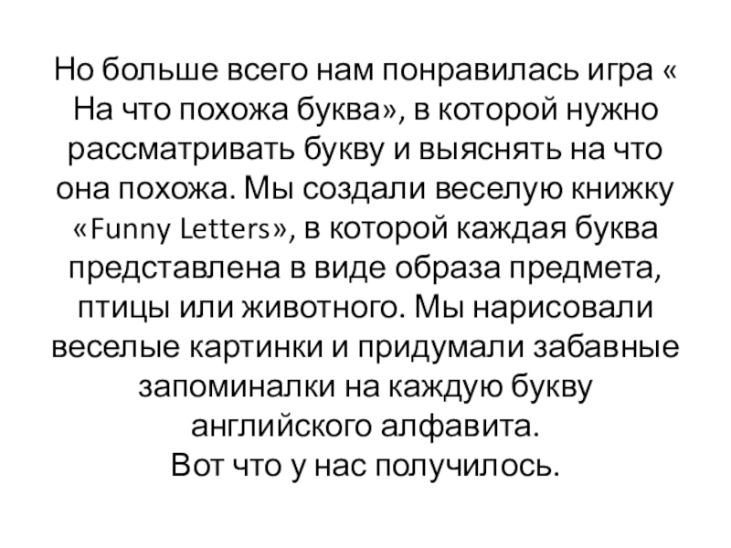 Слайд 18Но больше всего нам понравилась игра « На что похожа буква»,