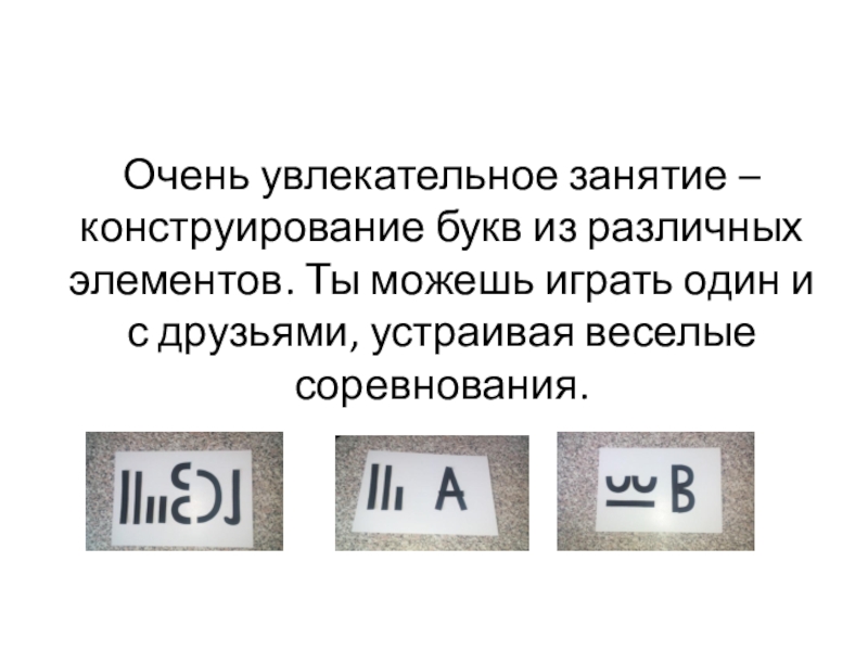 Слайд 16Очень увлекательное занятие – конструирование букв из различных элементов. Ты можешь