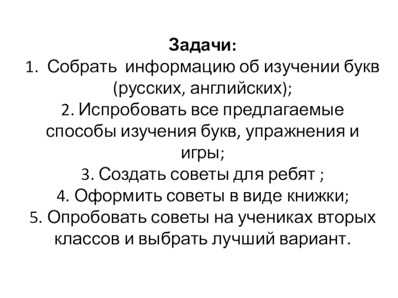 5. Опробовать советы на учениках вторых классов и выбрать лучший вариант.
