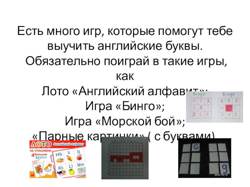 Слайд 17Есть много игр, которые помогут тебе выучить английские буквы.