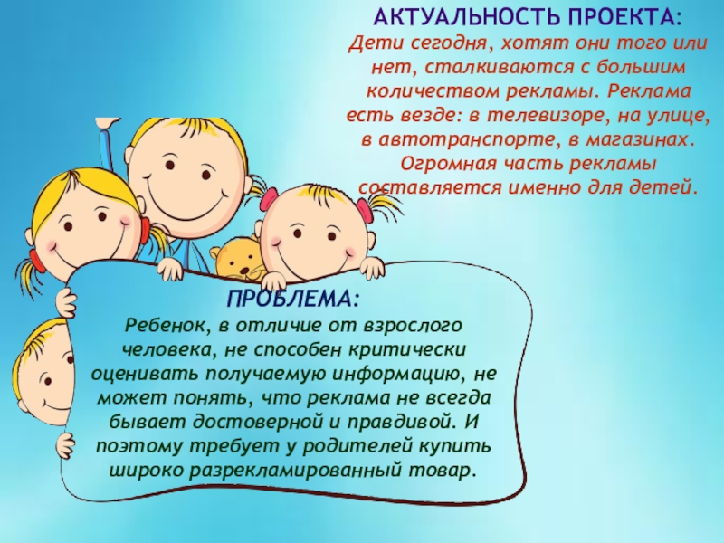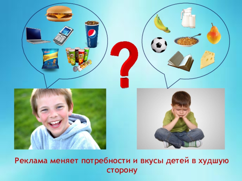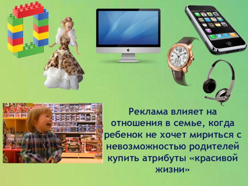 Ребенок, в отличие от взрослого человека, не способен критически оценивать получаемую информацию, не может понять, что реклама не всегда бывает достоверной и правдивой. И поэтому требует у родителей купить широко разрекламированный товар.