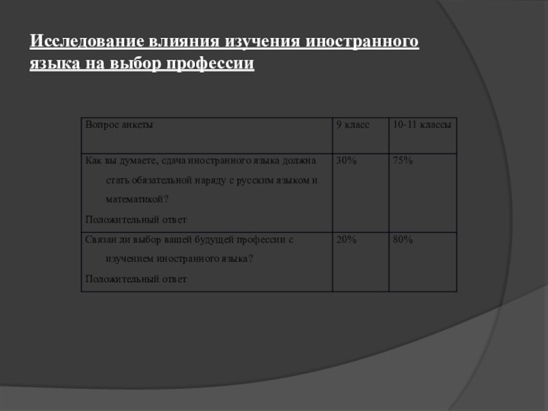 Слайд 11Исследование влияния изучения иностранного языка на выбор профессии