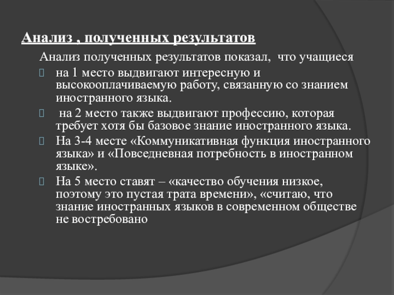 На 5 место ставят – «качество обучения низкое, поэтому это пустая трата времени», «считаю, что знание иностранных языков в современном обществе не востребовано