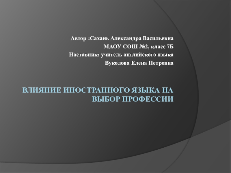 Рассмотрение влияния изучения иностранного языка на выбор профессии.