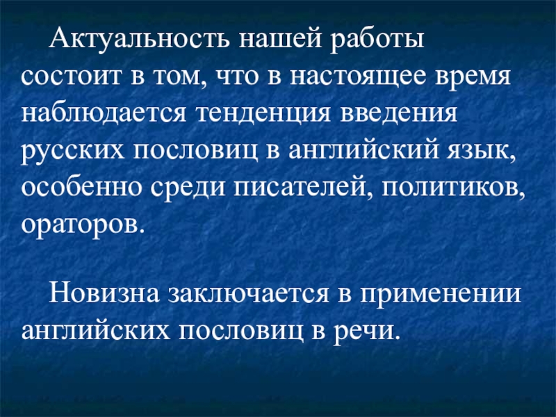 Новизна заключается в применении английских пословиц в речи.