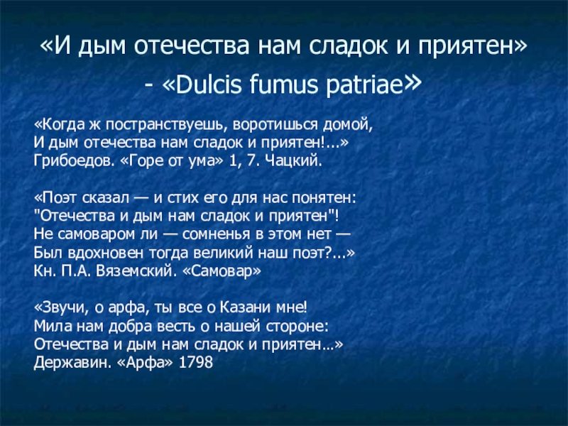И дым отечества нам сладок и приятен!...»