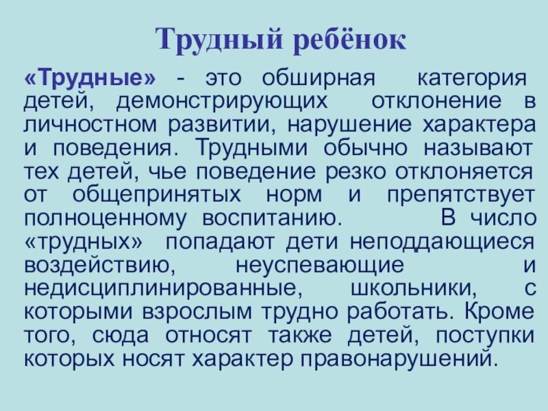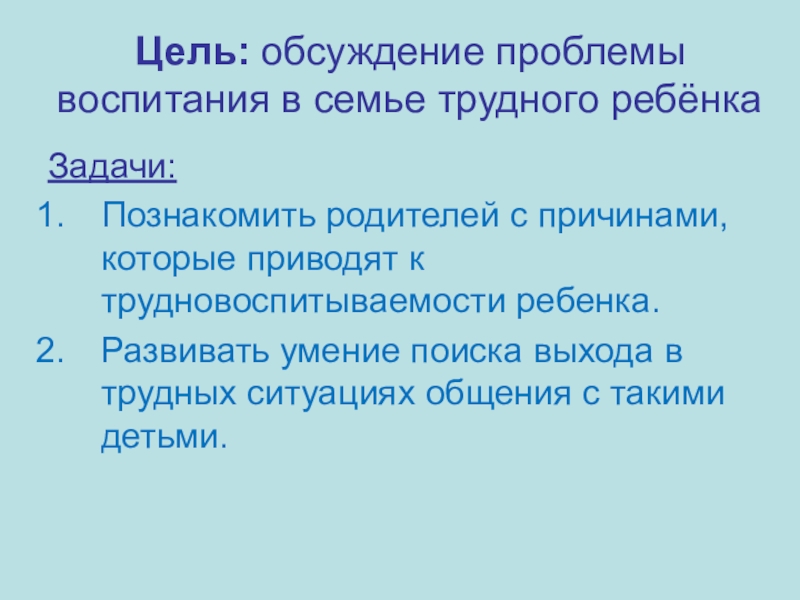 Цель: обсуждение проблемы воспитания в семье трудного ребёнка