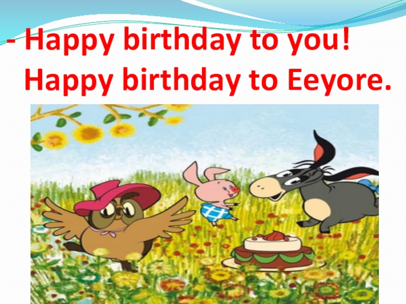 Слайд 18 - Happy birthday to you! Happy birthday to Eeyore.