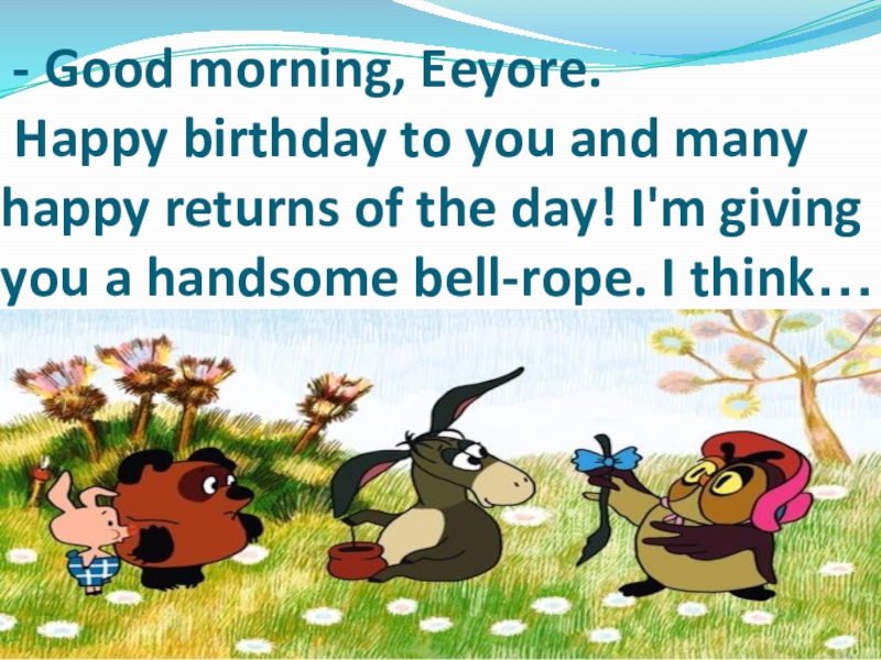 Слайд 15 - Good morning, Eeyore. Happy birthday to you and many