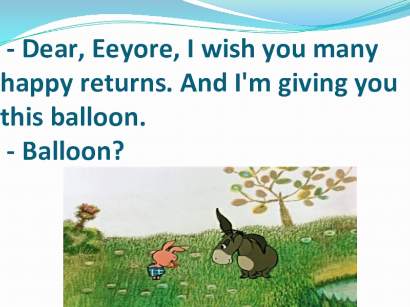 - Dear, Eeyore, I wish you many happy returns. And I'm giving you this balloon.