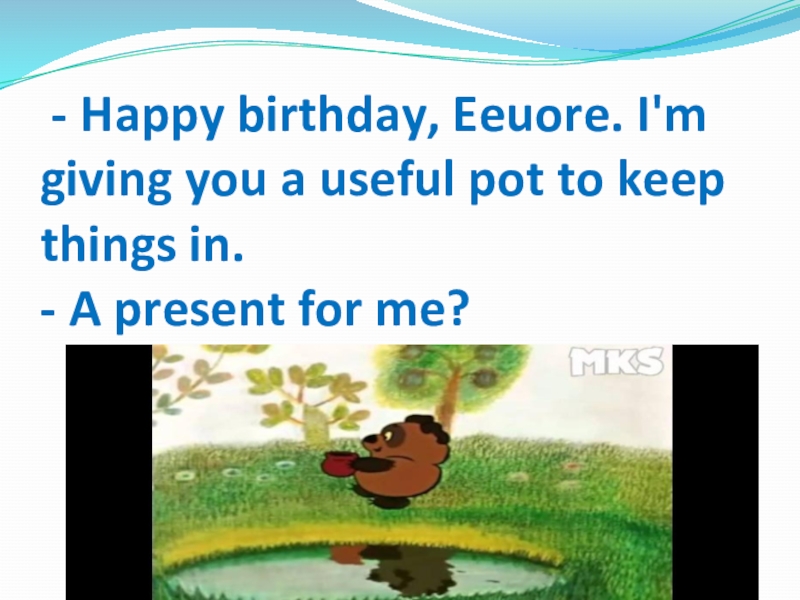 Слайд 5 - Happy birthday, Eeuore. I'm giving you a useful pot