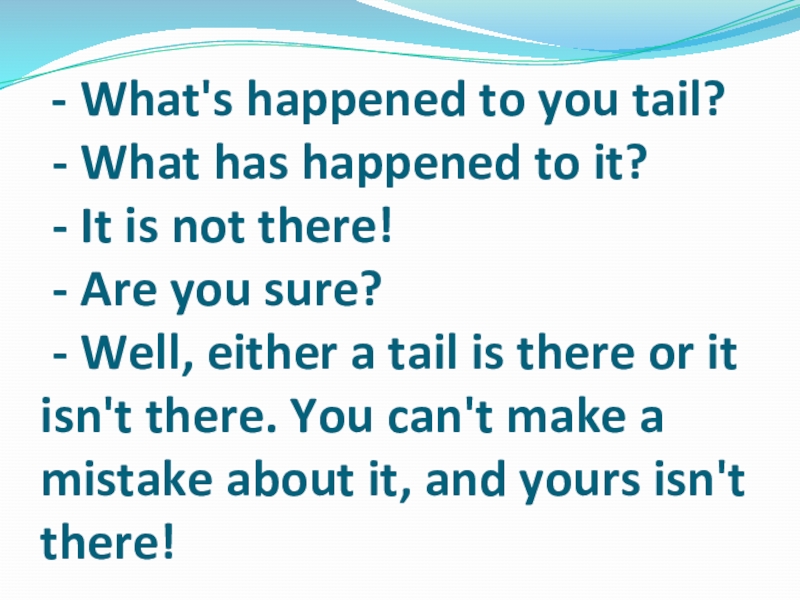 to it? - It is not there! - Are you sure? - Well, either a tail is there or it isn't there. You can't make a mistake about it, and yours isn't there!