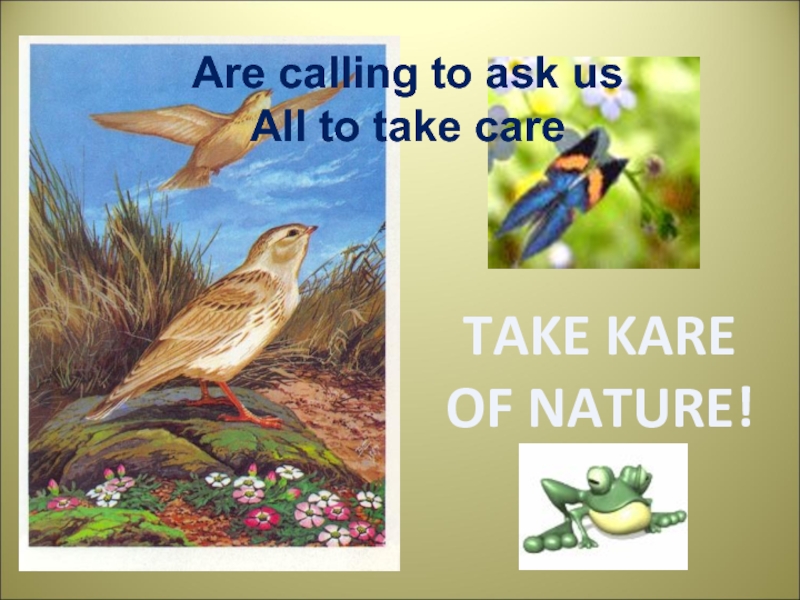 TAKE KARE OF NATURE!Are calling to ask us All to take care