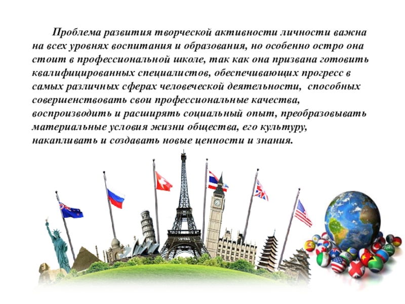 Слайд 2Проблема развития творческой активности личности важна на всех уровнях воспитания и