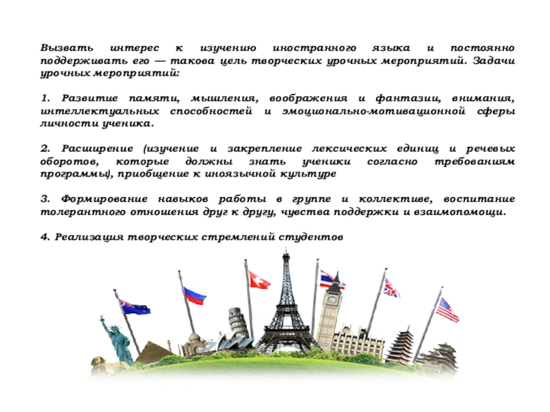 такова цель творческих урочных мероприятий. Задачи урочных мероприятий: