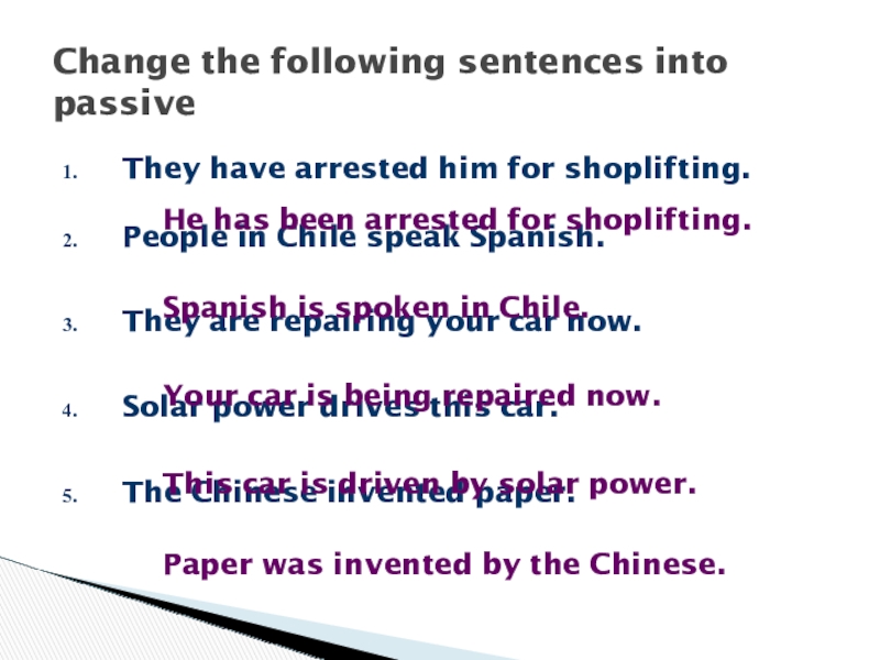 Change the following sentences into passive