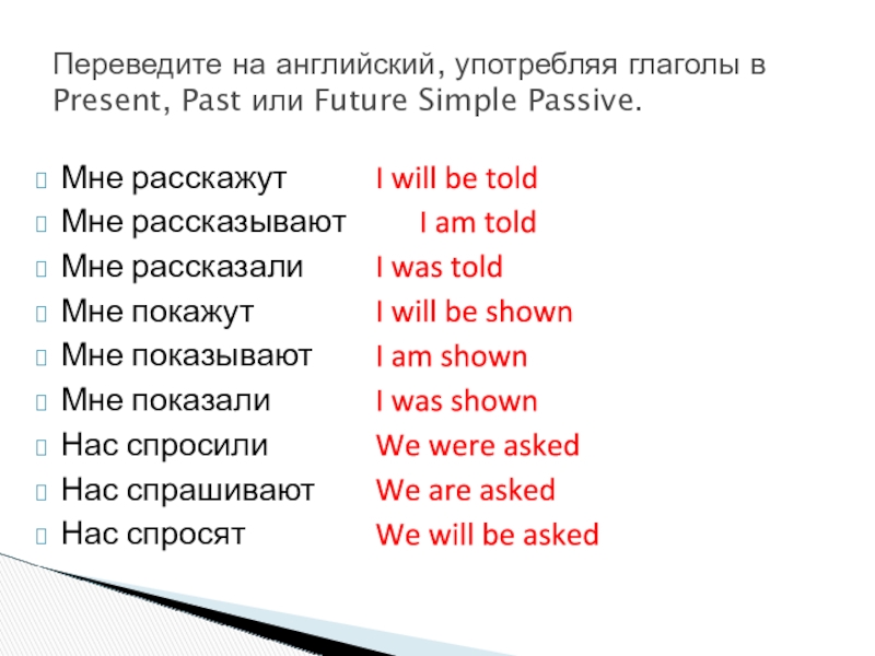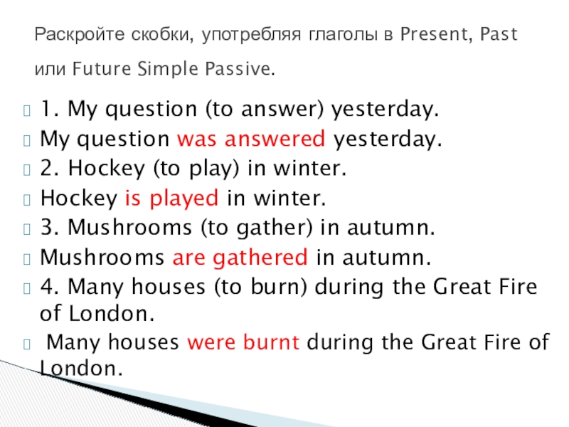 Переведите на английский, употребляя глаголы в Present, Past или Future Simple Passive.