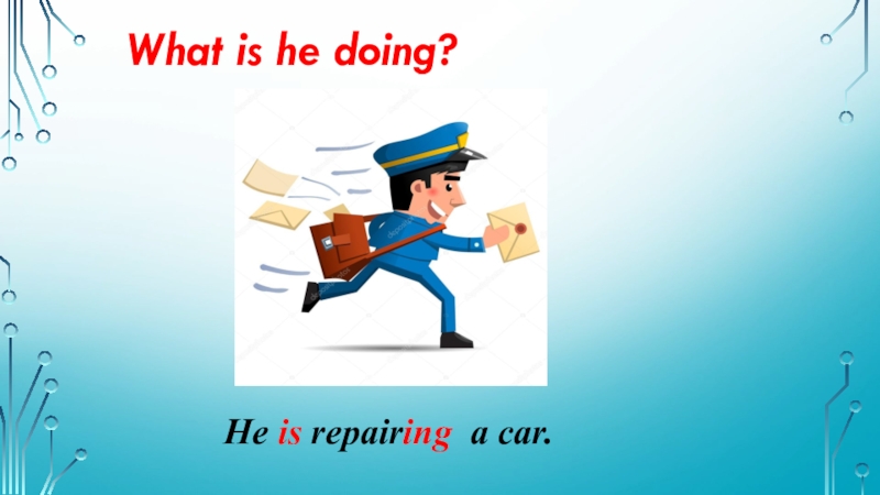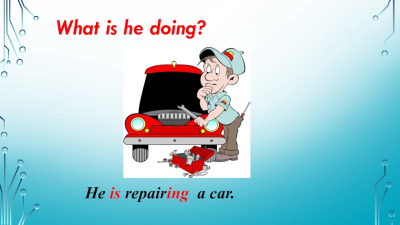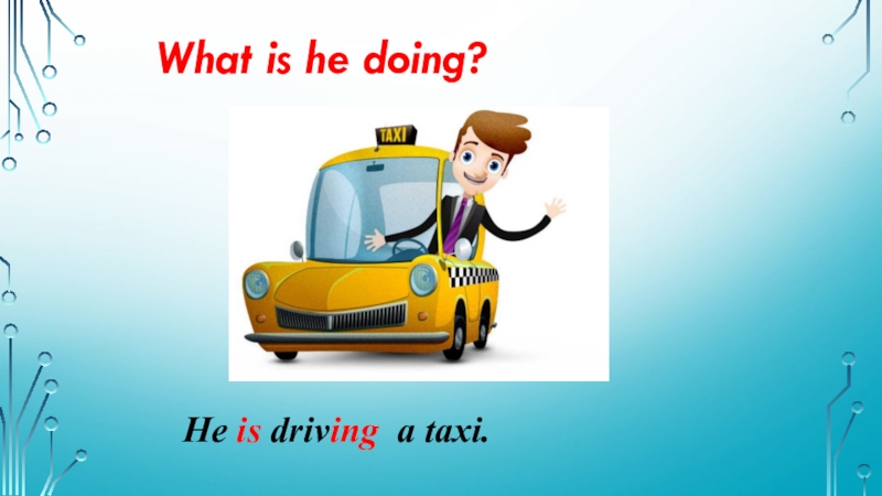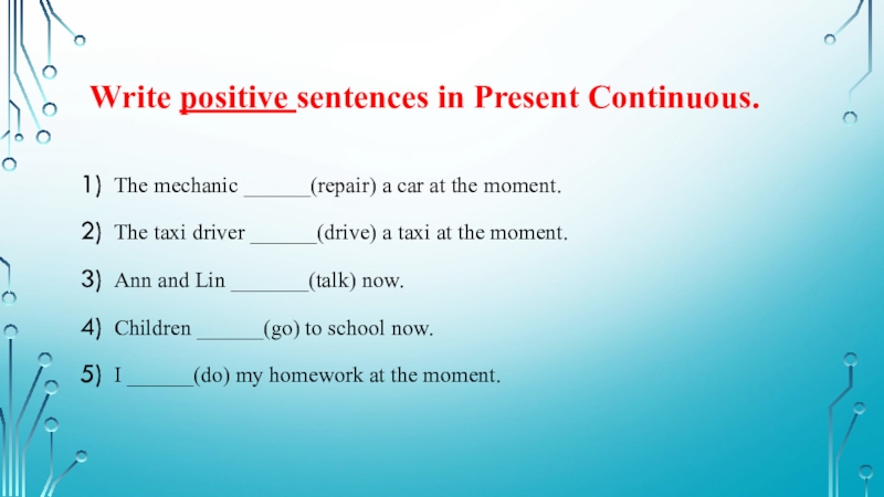 Write positive sentences in Present Continuous.The mechanic ______(repair) a car at the moment.The taxi driver ______(drive) a
