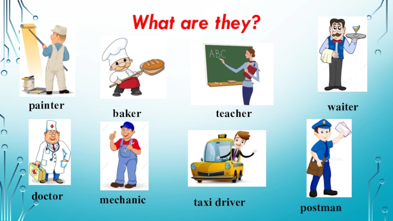 What are they?painter doctor baker teacher waiter mechanictaxi driver postman