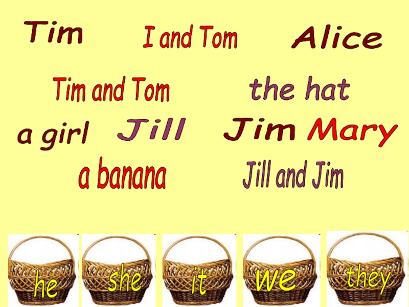 hesheittheyTim Alice weI and Tom Tim and Tom the hata girl Jill Jim a banana Mary
