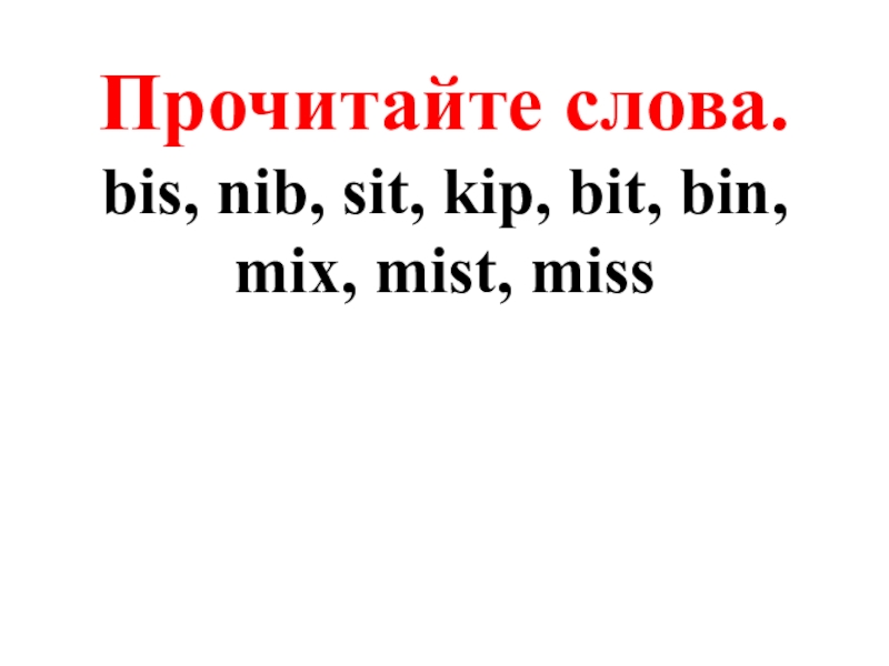 Прочитайте слова.bis, nib, sit, kip, bit, bin, mix, mist, miss