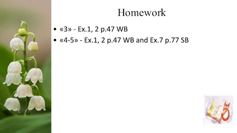 Homework«3» - Ex.1, 2 p.47 WB«4-5» - Ex.1, 2 p.47 WB and Ex.7 p.77 SB
