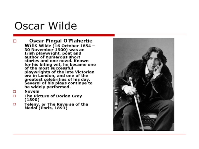 – 30 November 1900) was an Irish playwright, poet and author of numerous short stories and one novel. Known for his biting wit, he became one of the most successful playwrights of the late Victorian era in London, and one of the greatest celebrities of his day. Several of his plays continue to be widely performed.