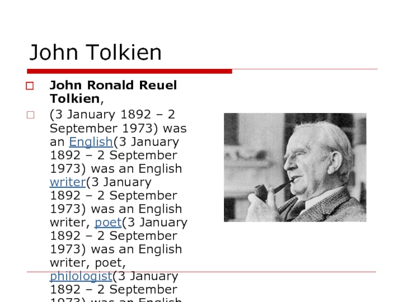 was an English(3 January 1892 – 2 September 1973) was an English writer(3 January 1892 – 2 September 1973) was an English writer, poet(3 January 1892 – 2 September 1973) was an English writer, poet, philologist(3 January 1892 – 2 September 1973) was an English writer, poet, philologist, and university professor, best known as the author of the classic high fantasy works The Hobbit, The Lord of the Rings and The Silmarillion.