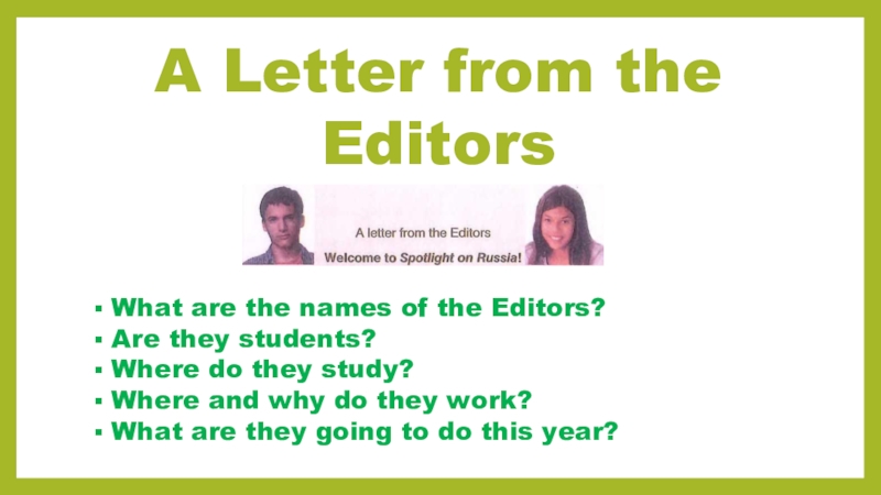 Слайд 2A Letter from the Editors