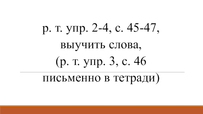 Слайд 7р. т. упр. 2-4, с. 45-47,