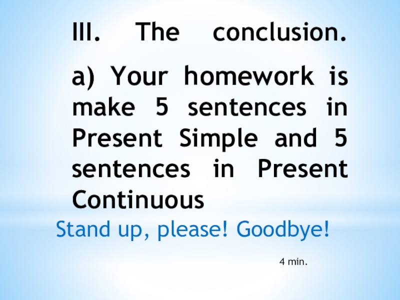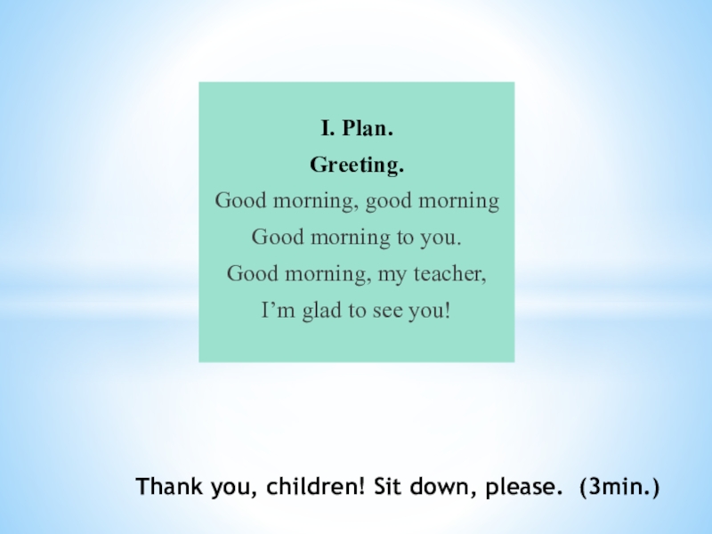 Thank you, children! Sit down, please. (3min.)