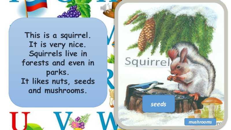 This is a mouse. It is grey and little. It lives in fields, forests and houses. Mice eat grain and seeds. They like cheese.
