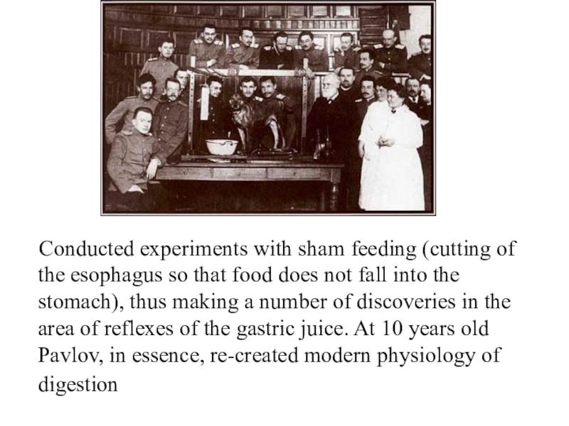 Слайд 6 Conducted experiments with sham feeding (cutting of the esophagus