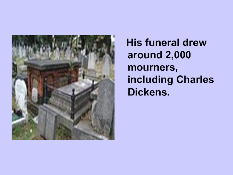 Слайд 5 His funeral drew around 2,000 mourners, including Charles Dickens.