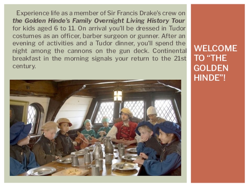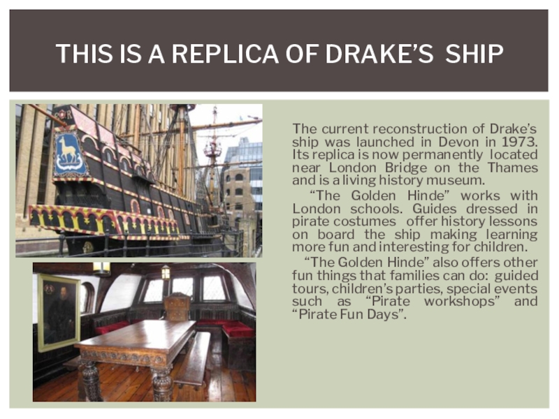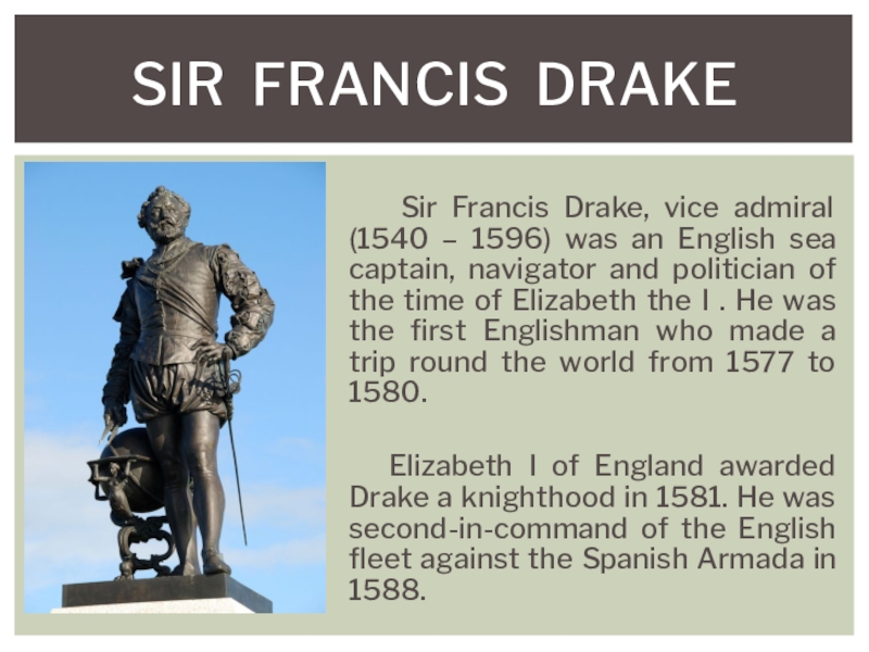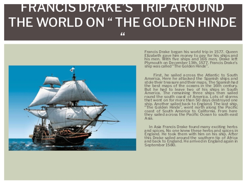Francis Drake’s trip around the world on “ the Golden Hinde “