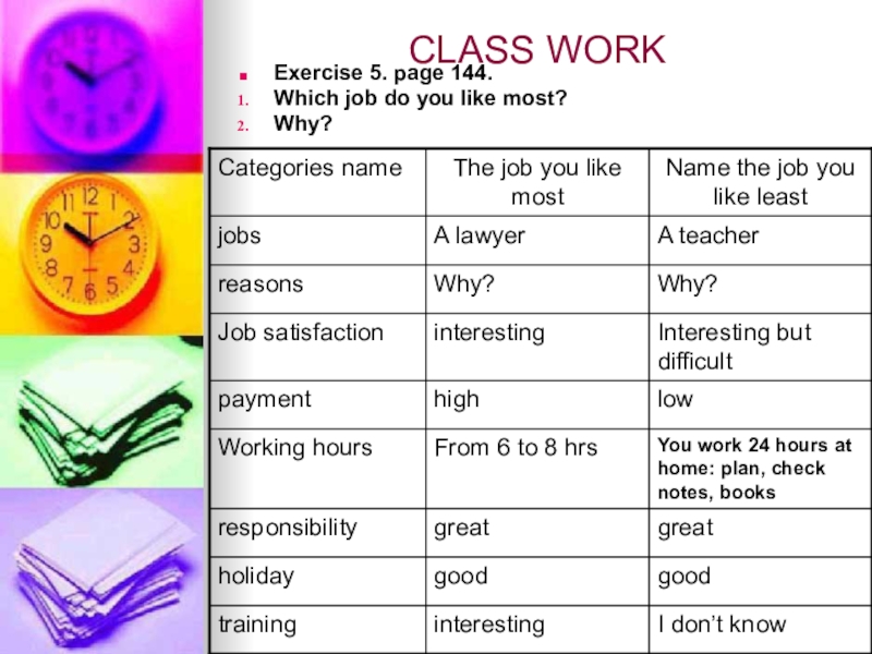 CLASS WORKExercise 5. page 144.Which job do you like most?Why?