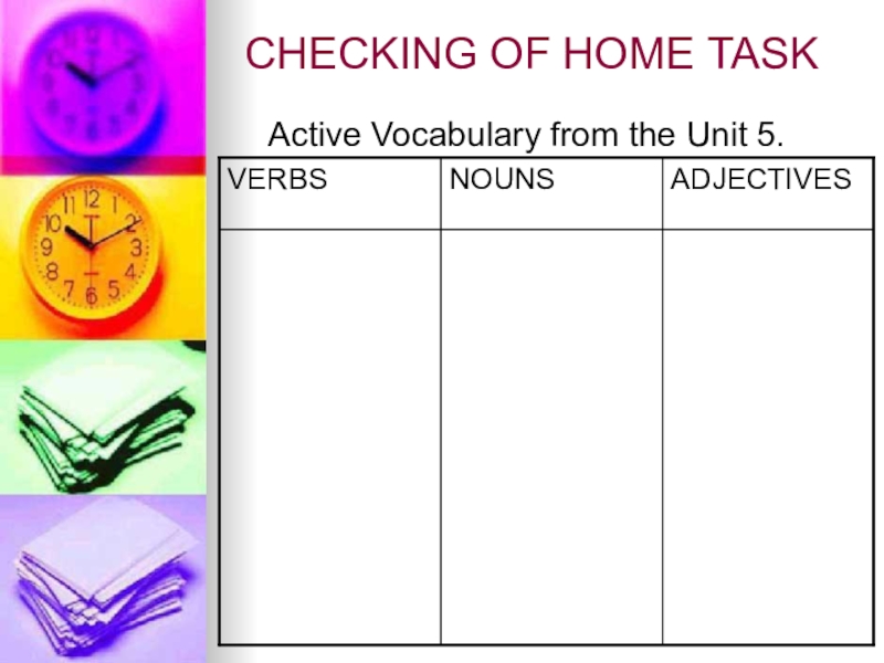 CHECKING OF HOME TASKActive Vocabulary from the Unit 5.