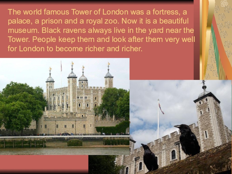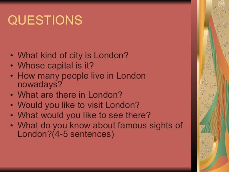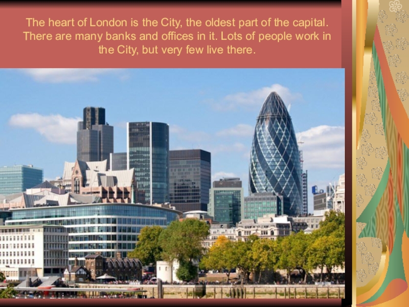 More than 7 million people live and work there. London is the political, business and cultural centre of the UK.