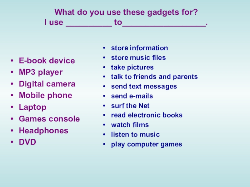 2. It is a small portable computer. You can carry it around with you and it can sit on your lap. You can use it to connect the Internet, send e-mails, store information. It is a /an_____________.